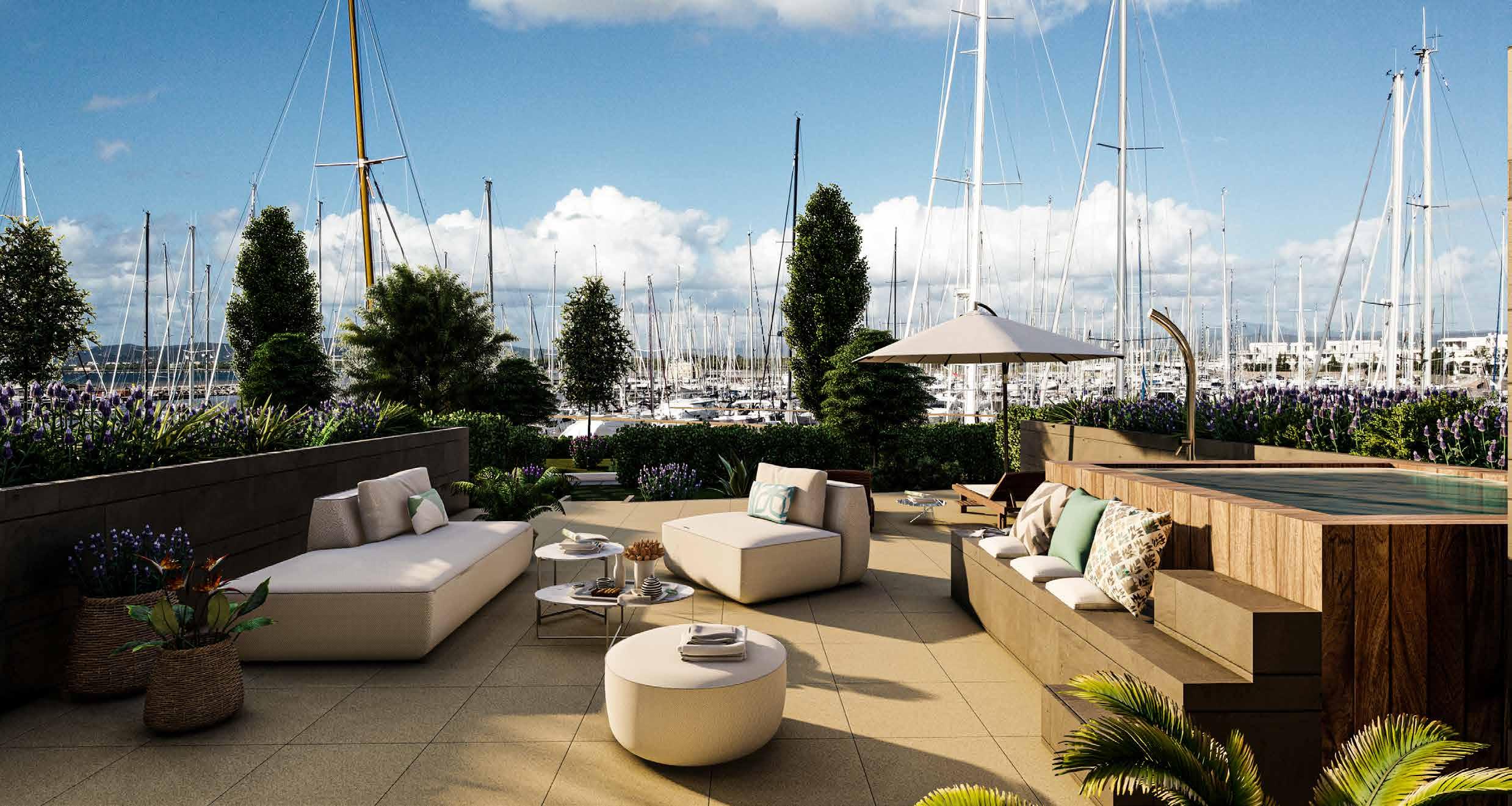 Create your own personalized dream house for an independent villa by combining four units into one. Here is a look at what your home will look like in three perspectives (ground floor, first floor, and roof terrace). Contact our staff to know more about the possible tailor-made solutions we can offer for each apartment.