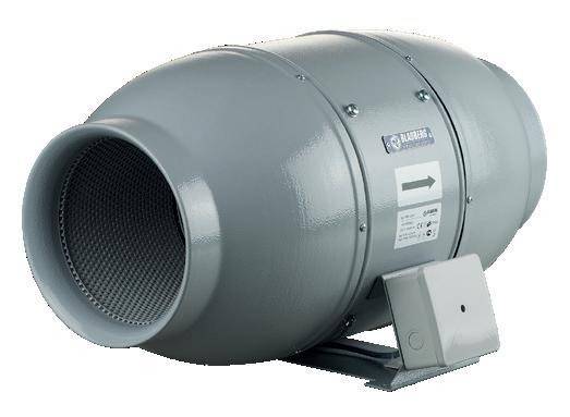 • Mixed flow impeller blade design enables longer duct runs to be used.