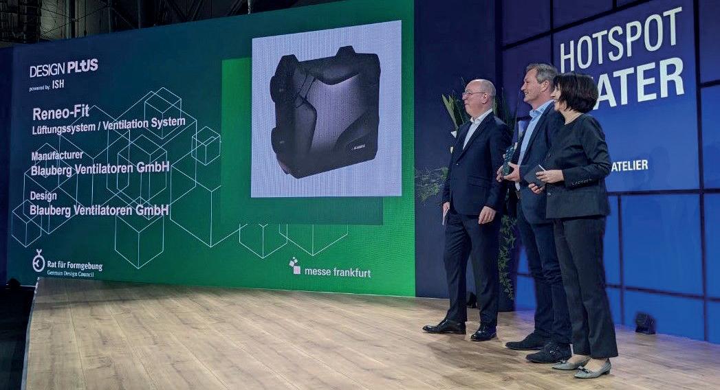 The new product from Blauberg Ventilatoren has won a prestigious Design Plus powered by ISH award. Reneo-Fit is a compact-size ceiling-mounted air handling unit with counter-flow heat exchanger in a designer heat- and sound-insulated EPP casing demonstrating air for performance up to 100 m3/h. Available to purchase on page 34.