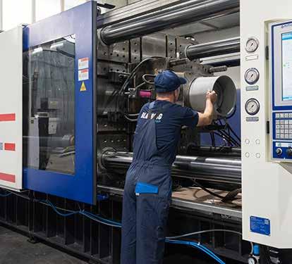 One injection moulding machine in particular has unique features: it allows Blauberg to manufacture larger products. This machine is currently involved in producing large plastic casings for Blauberg Primo inline mixed-flow fans, weighing up to 4.5kg.