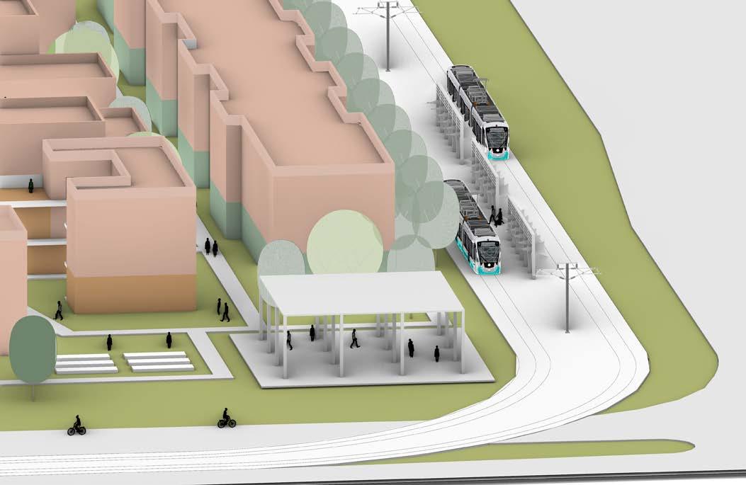 lightrail corridor trees + pedestrian walkway