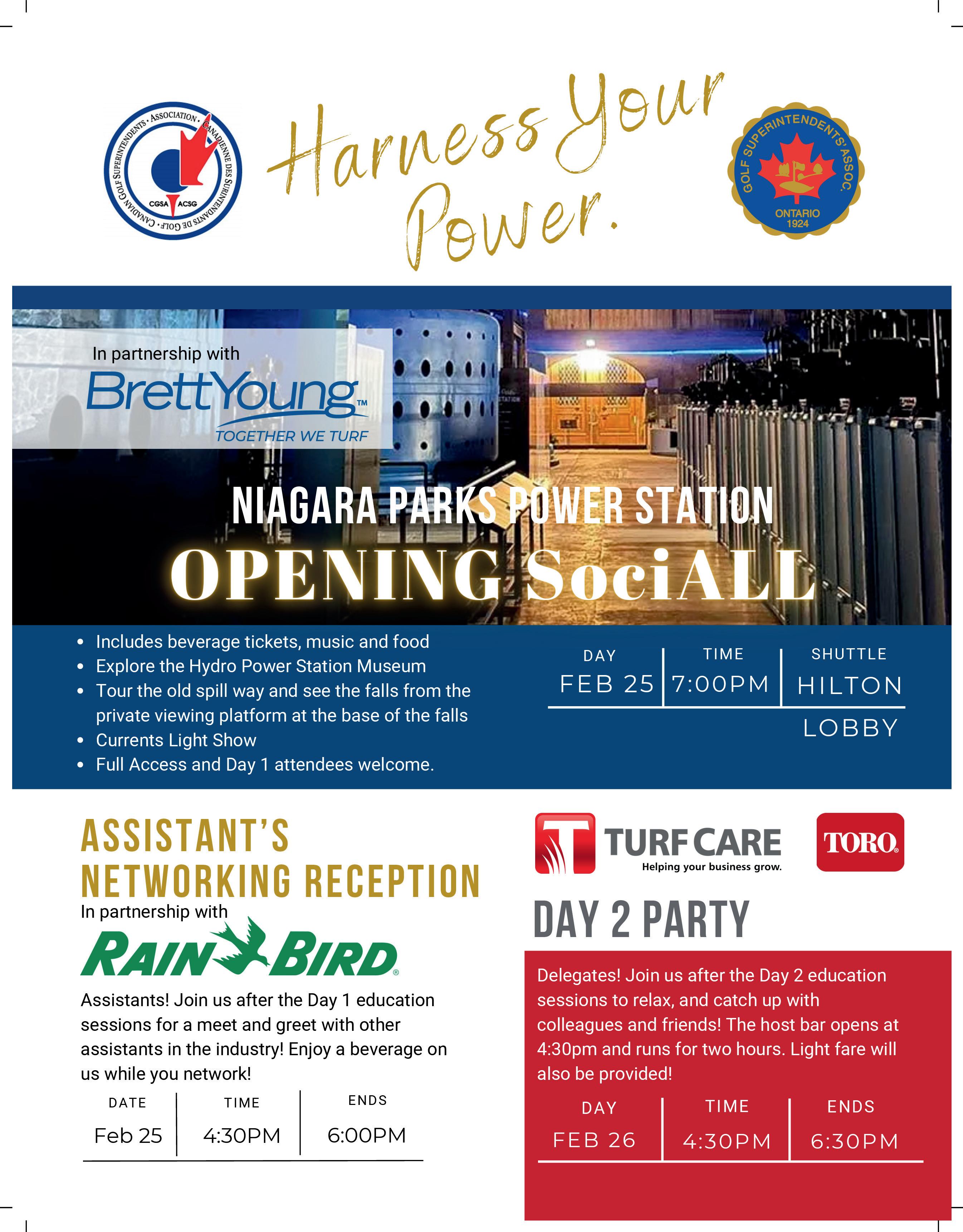 a wide range of professional development sessions. This conference has multiple stages, a Women in Turf networking breakfast, an Assistant’s Networking Reception, and an equipment manager’s education series. Attendees will also have a chance to visit the industry tradeshow and connect with suppliers and we’re also heading back to the Niagara Parks Power Station for our welcome reception, which will be awesome, and I encourage you to bring your whole team. Groups of four or more qualify for $50 off each registration; just email admin@ogsa. ca before you register, and the OGSA team will send you a unique promo code.