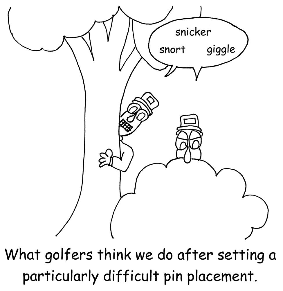 It would be counterintuitive, to think for a moment, that the on-course staff have a vested interest in making your experience so awful that our course becomes unpopular, and ultimately unprofitable. We aren’t trying to ruin your day – we actually spend every waking hour striving to create the best playing environment possible within our physical and budgetary restrictions. We want you to have fun!