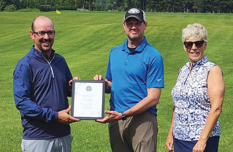 OGSA VP Kevin Collier & Allturf rep Nigel Rennie celebrate Superintendent Zach Robertson and his team at Tarandowah GC for their efforts in hosting the Ontario Men’s & Sr. Men’s Match Play Championship on June 13th