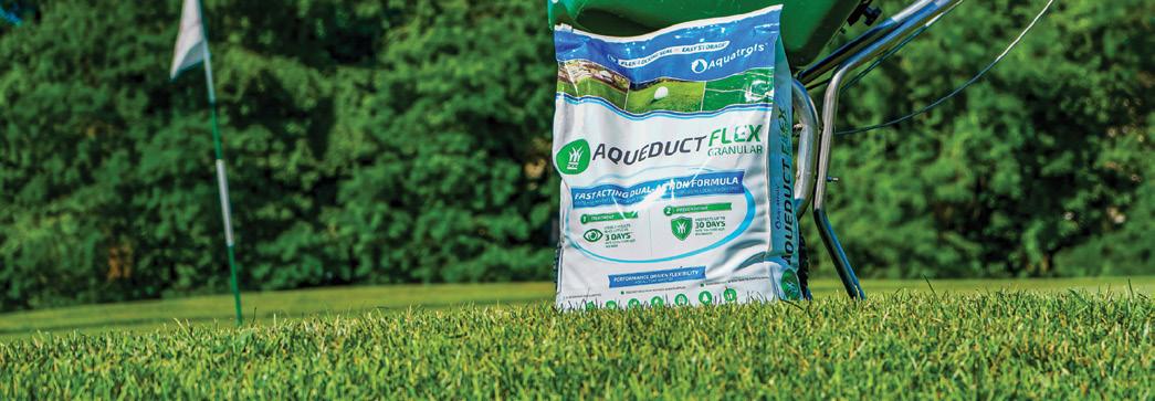Aqueduct Flex contains an exclusive dual-action formula speci cally designed to give turf care professionals superior performance with exible options for dealing with stressful conditions, including water repellency and localized dry spot.