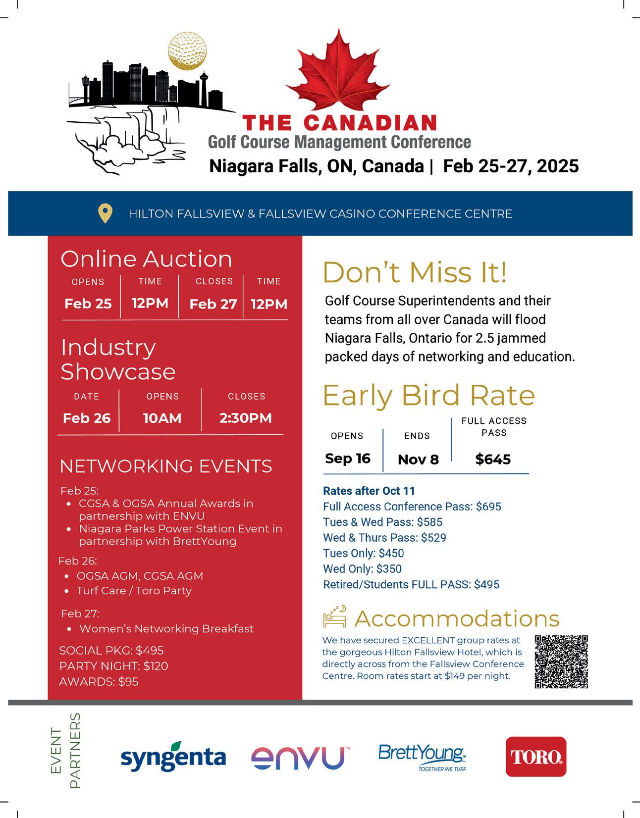 The Canadian Golf Course Management Conference, in concert with the OGSA Niagara Falls, Ontario