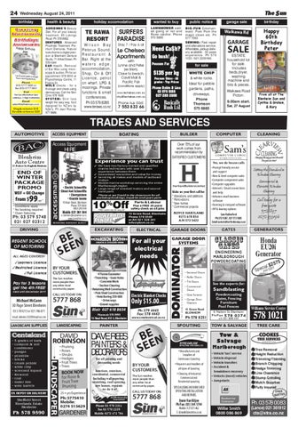 •4 Tonne Excavator • Trenching • Soak Holes • Concrete Work • Section Clearing • Retaining Wall Construction • Pole Shed Construction • Hole Boring 350-600 • Drive ways • Gravel supplies Phone ah 570 5995 15 Neal Road, R D 3, Blenheim