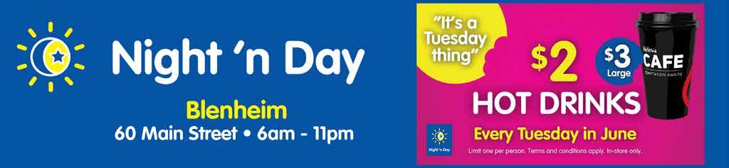 Sun The Wednesday June 12, 2024 2 Same Day Click and Collect timeslots available now faster? Need groceries FS143661 - NWSI_Online 2024 Same Day Timeslots - press advert.indd 1 20/05/2024 3:51 PM Our professional and caring team are here to guide you every step of the way. With our modern chapel and facilities, you can bid farewell in comfort and style. Corner Hutcheson & Parker Streets, Blenheim | 03 578 4719 www.sowmans.co.nz Say goodbye to your loved one with dignity and respect Preplan | Prepay