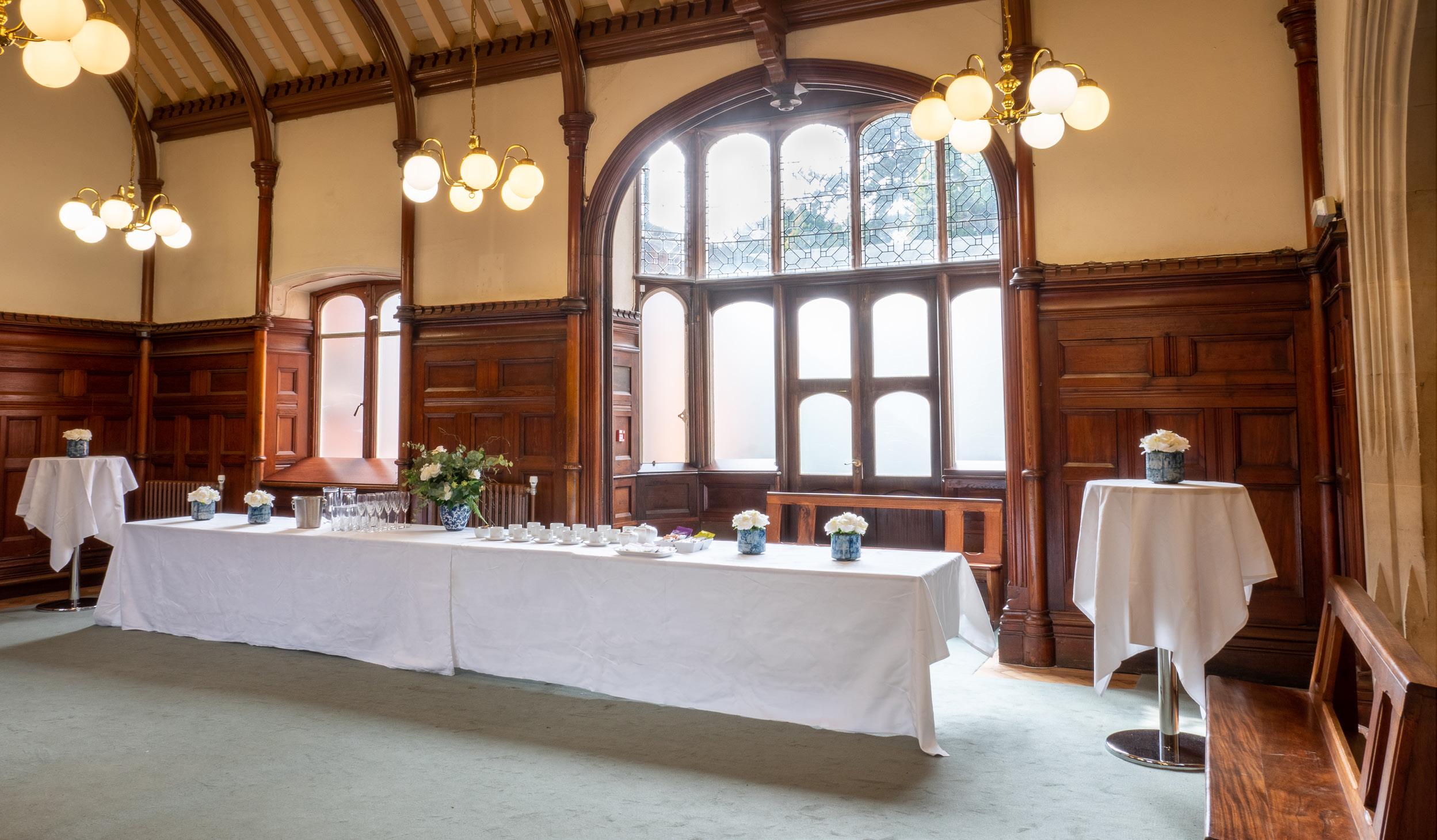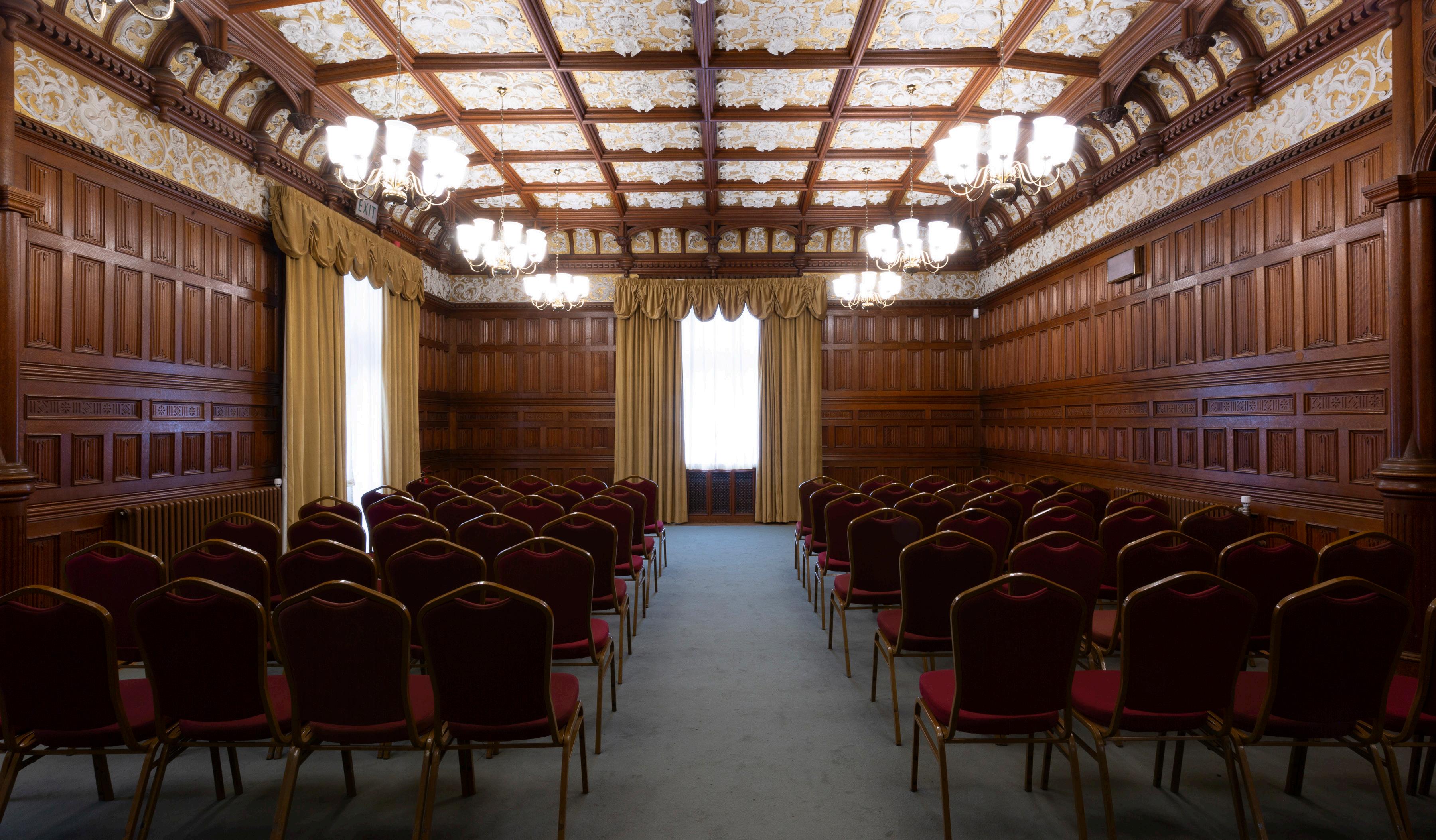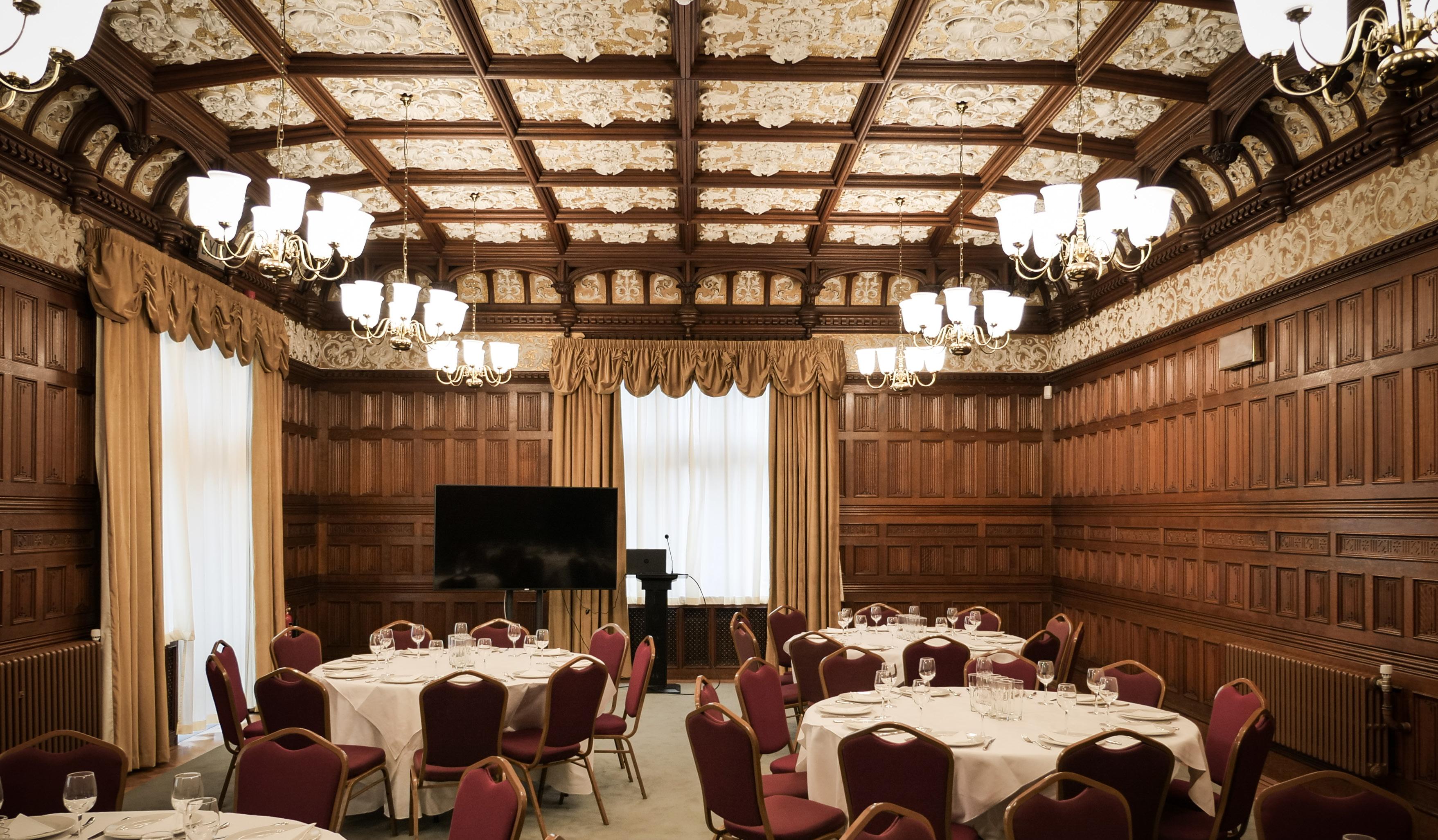 With ornate décor, including a stunning gilded ceiling and historic wood panelling, the Ballroom is a beautiful space to hold atmospheric events and meetings.