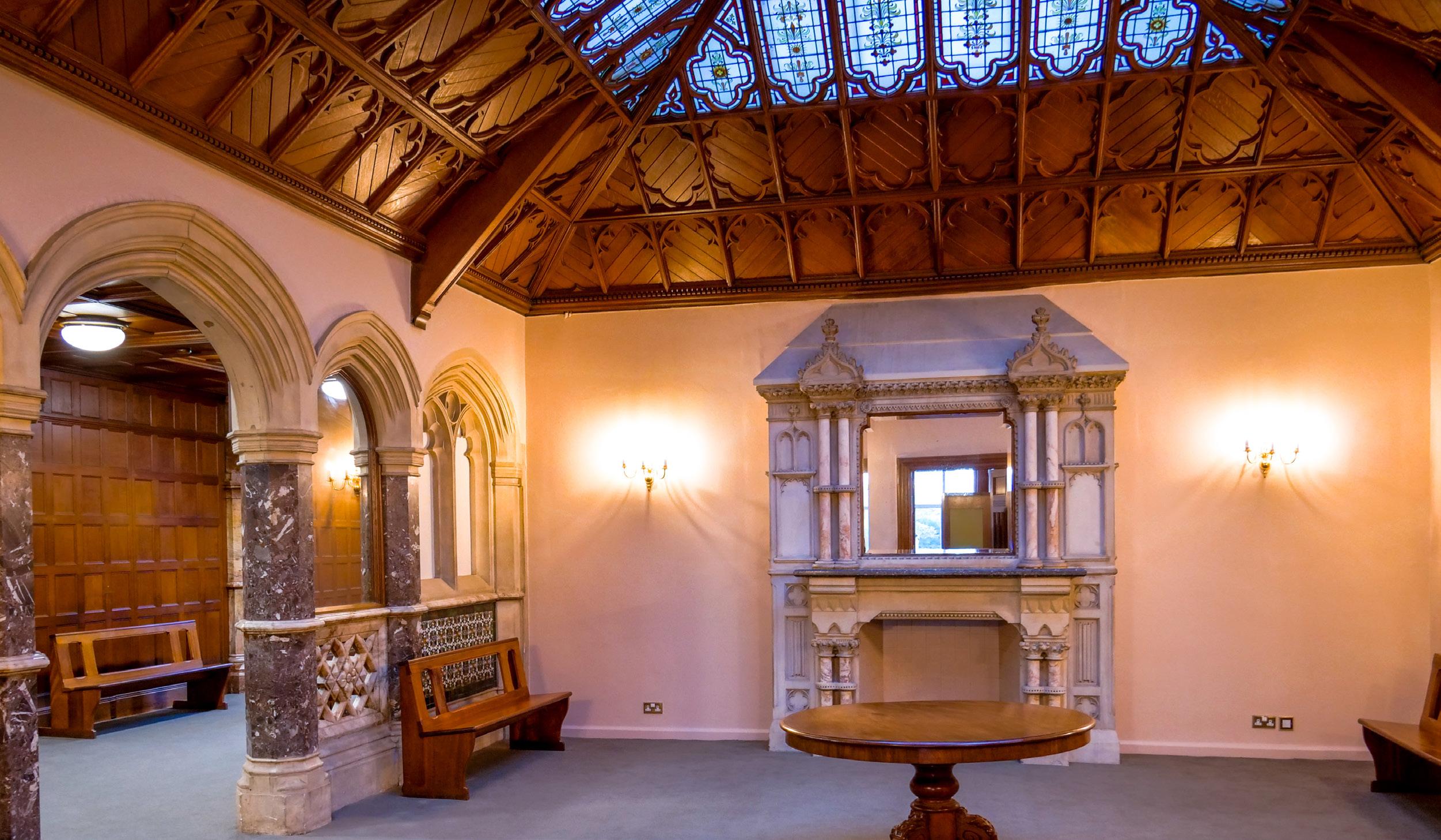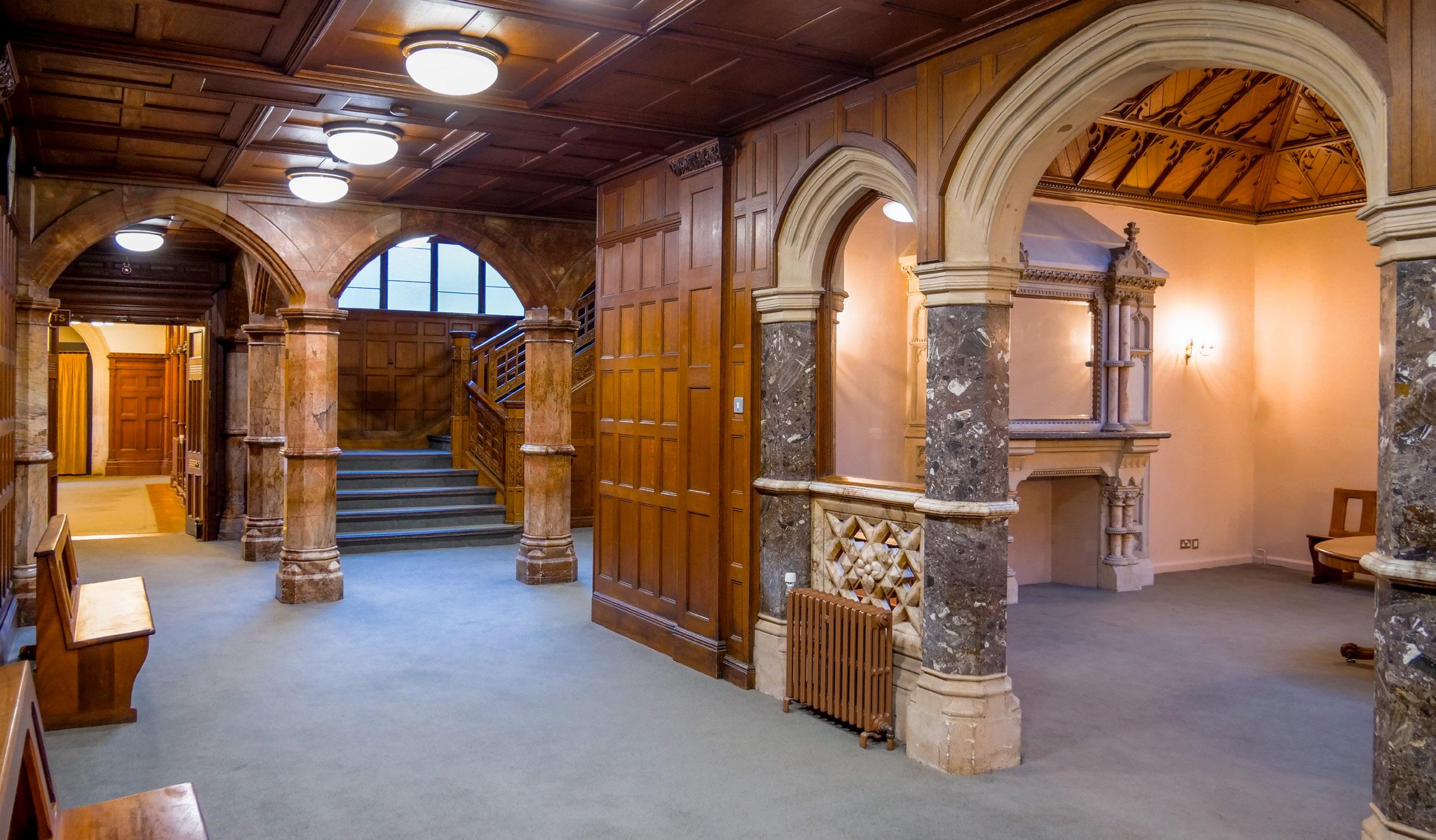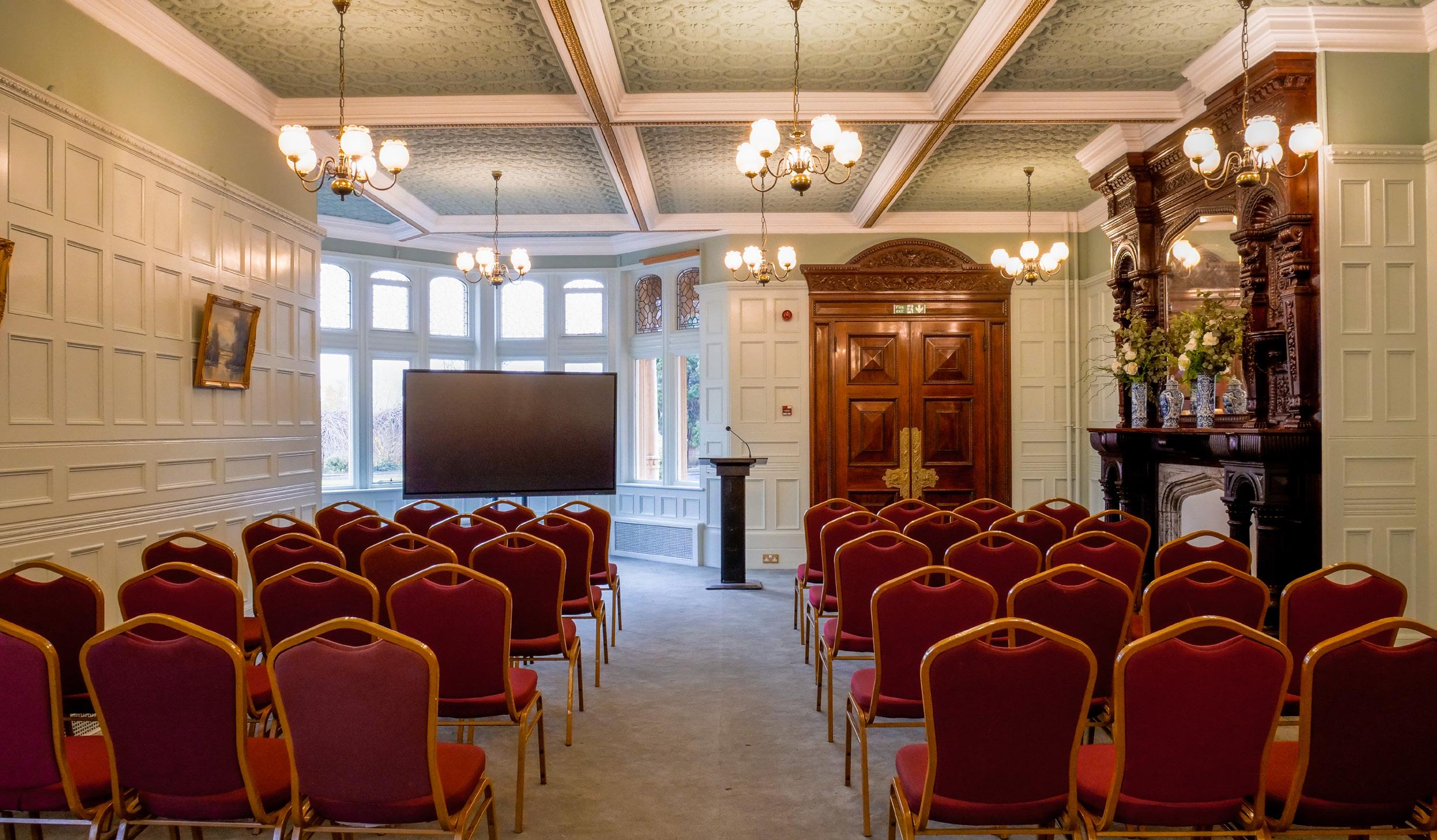 With ornate décor, including a stunning gilded ceiling and historic wood panelling, the Ballroom is a beautiful space to hold atmospheric events and meetings.