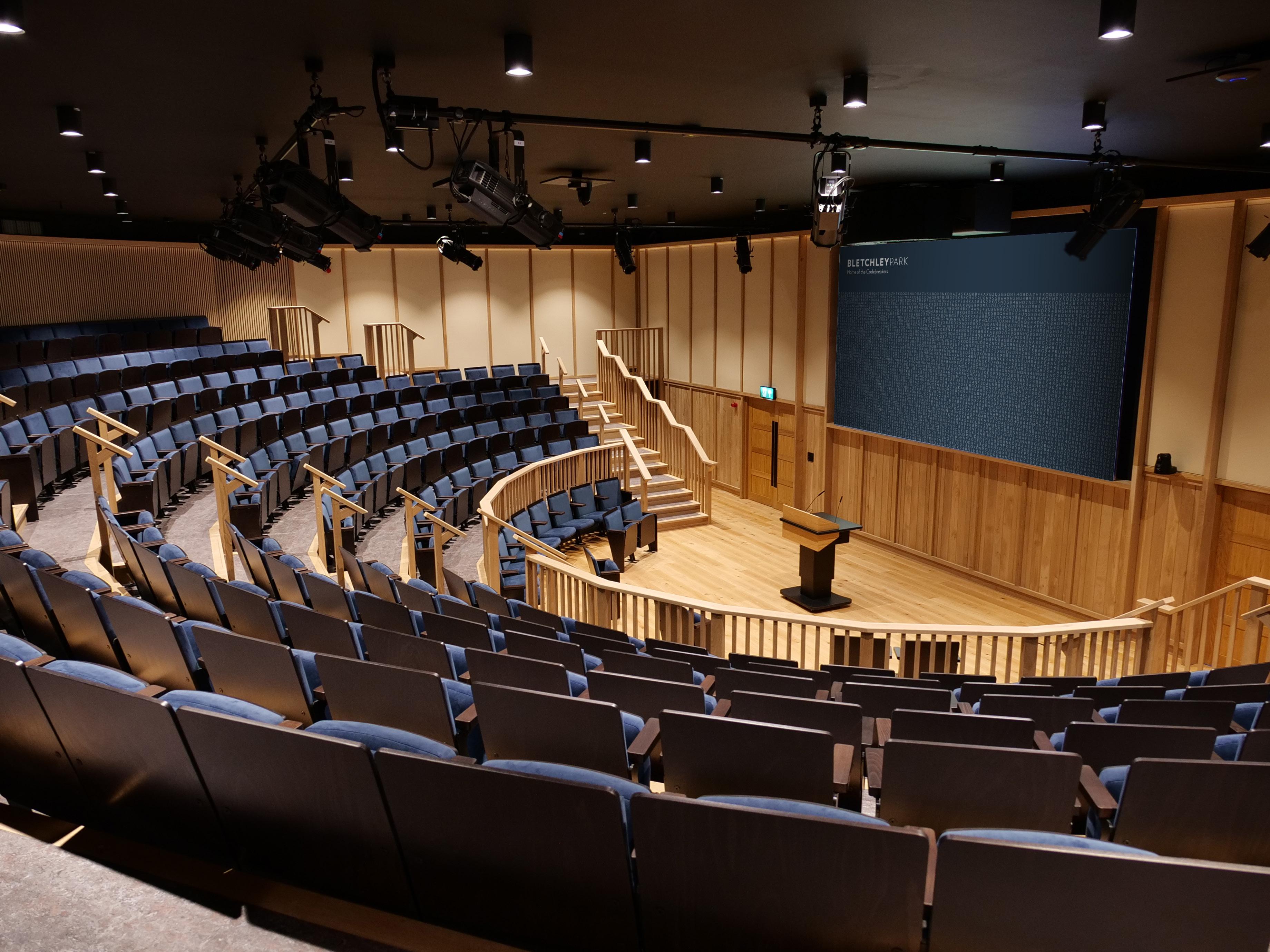 Block E, where the auditorium is situated, was built in 1943 and was the only block devoted entirely to communications at Bletchley Park during World War Two. Sections working here handled incoming and outgoing messages, encryption using machines such as Typex, and the distribution of material throughout the organisation.