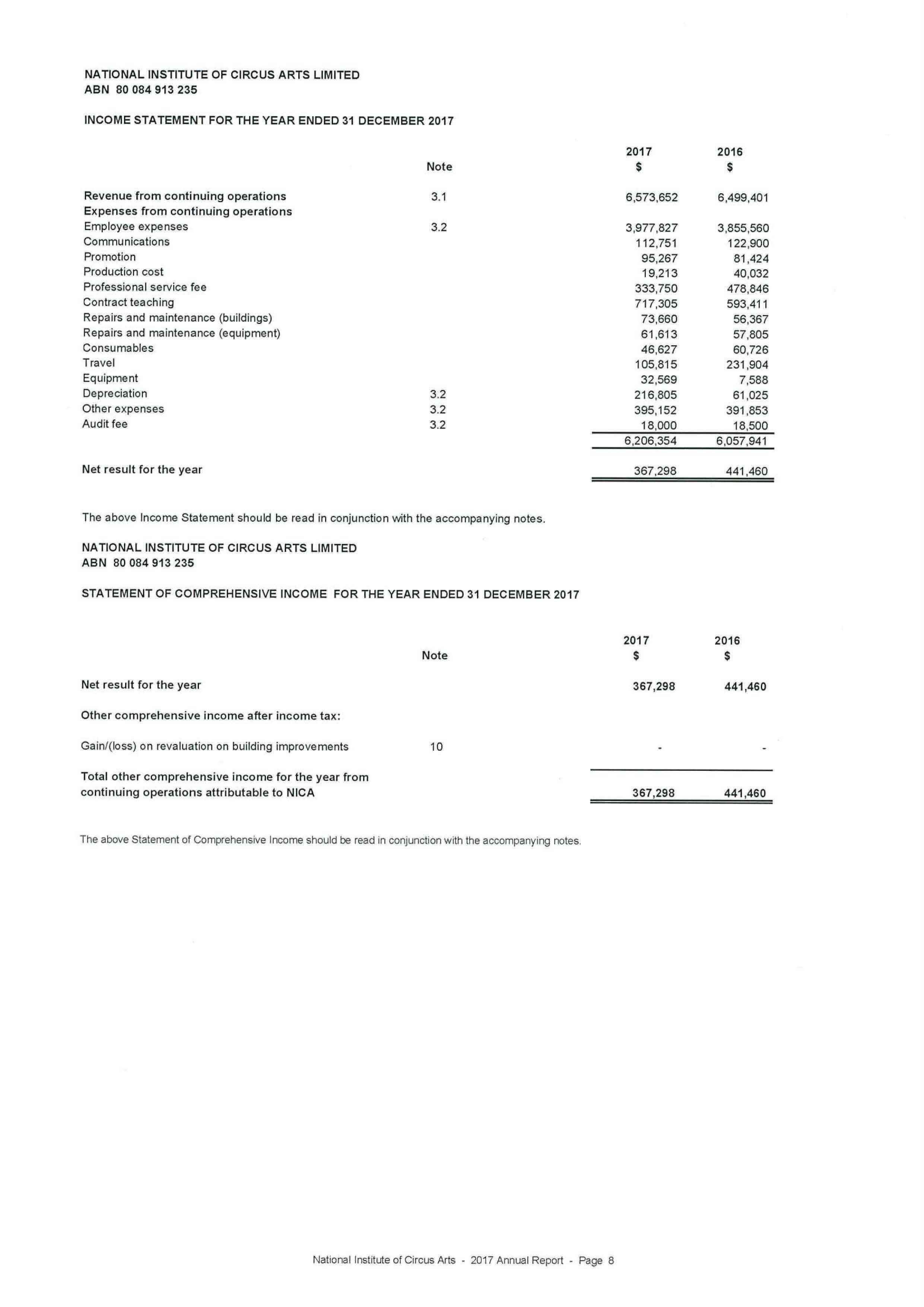 Our achievements would not be possible without the dedicated trainers and the many independent artists and NICA graduates who contributed to a successful 2017. I also wish to acknowledge the staff who maintain sound business systems and quality assurance, and the staff behind the scenes, all of whom deserve a huge thank you. wish to express my gratitude to all for another productive year with many more to come.