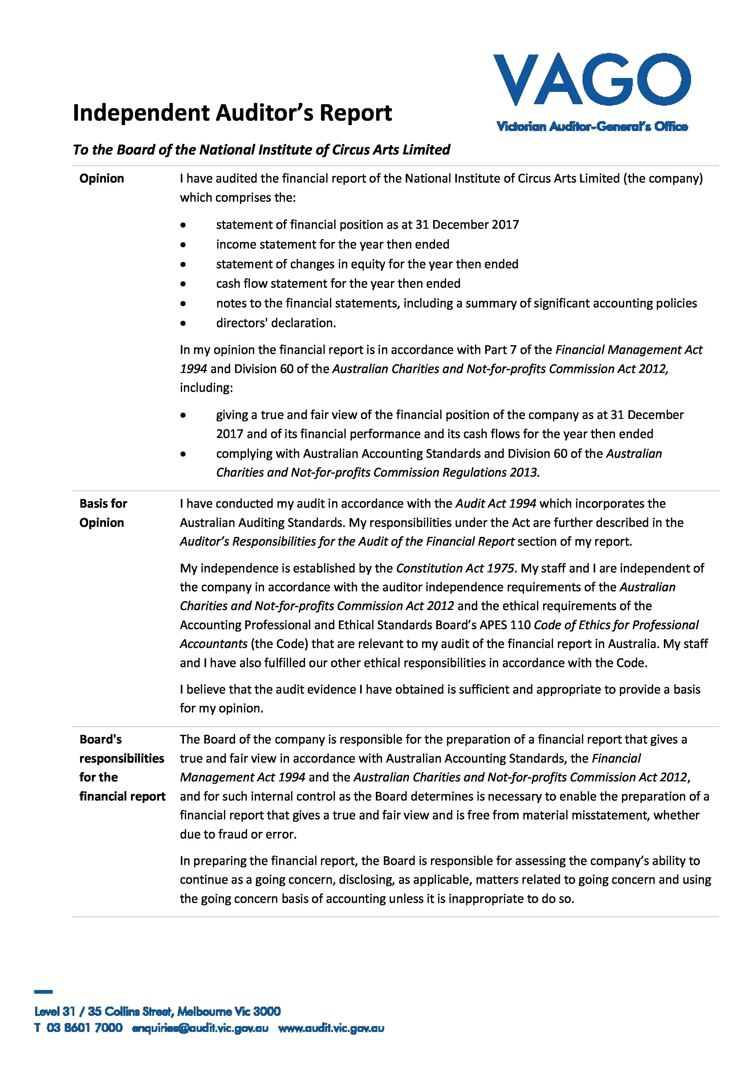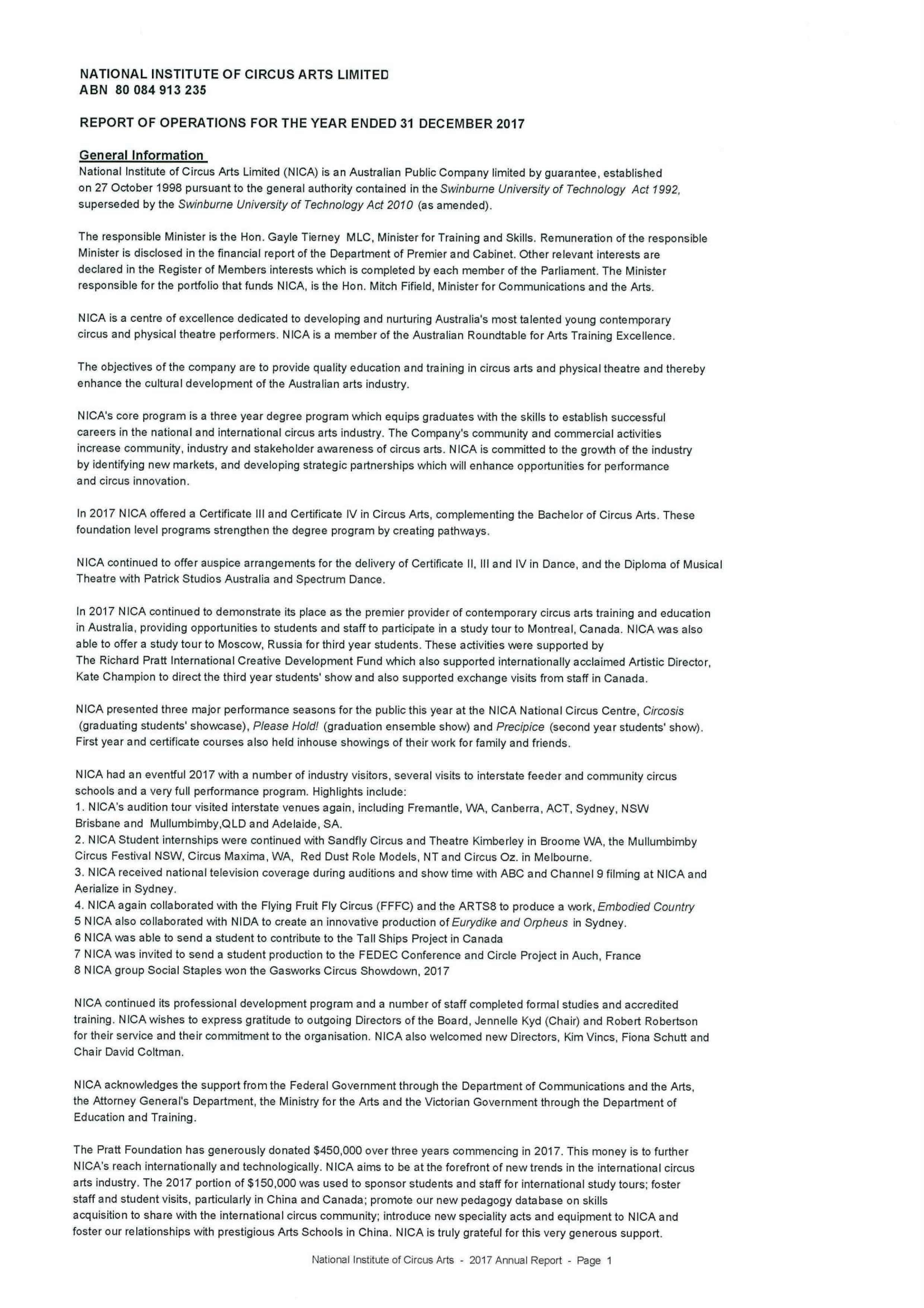 Mr David Coltman Chair of the Board, National Institute of Circus Arts Deputy Vice Chancellor Pathways and Vocational Education, Swinburne University of Technology Image: NICA student Harley Timmermans. Aaron Walker Photography. Image: NICA student Ian Richardson. Aaron Walker Photography.I am delighted to present the 2017 Annual Report for the National Institute of Circus Arts (NICA).