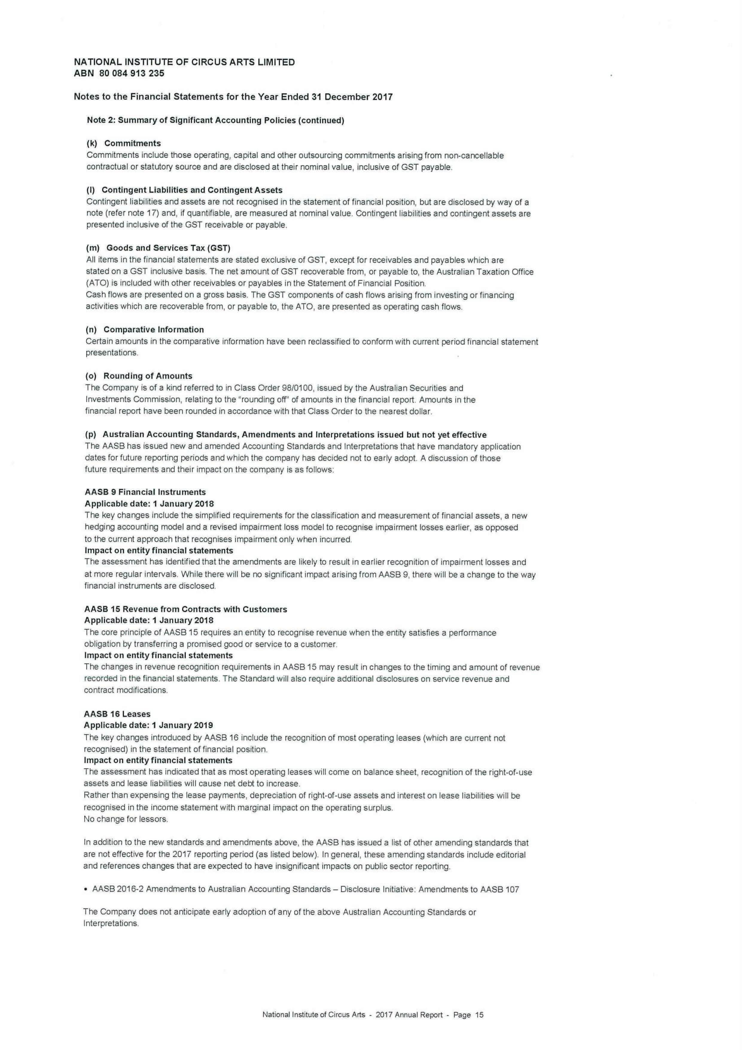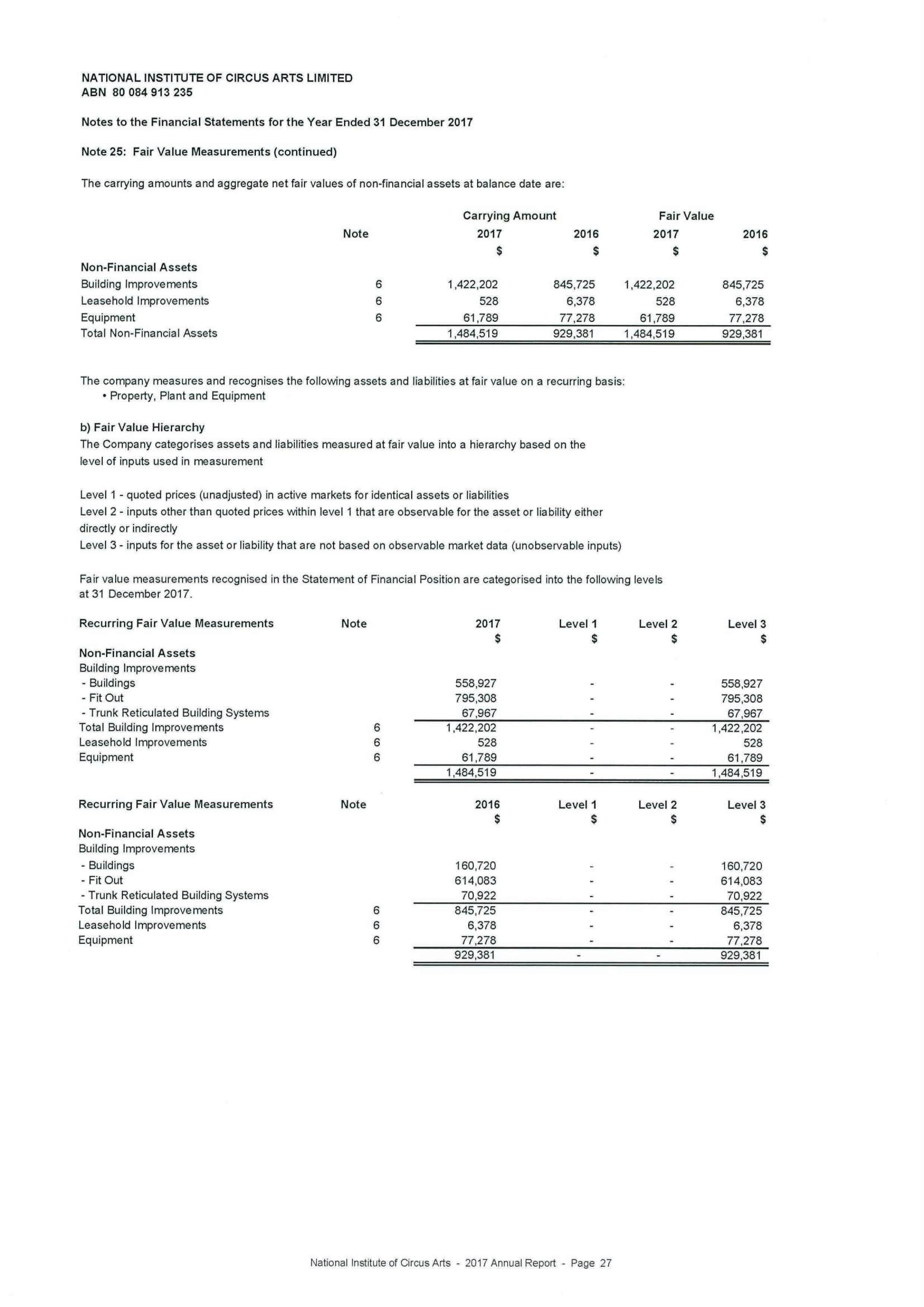 on Green Street, Prahran with the refurbishment of the staffing area and the addition of a two storey purposebuilt storage area allowing us to relinquish the leased premises nearby. The convenience and future financial savings that the completion of stage one and two has achieved will stand NICA in good stead for the future and allow it to continue to produce world class, elite circus artists. The continued support of NICA’s operations by Swinburne University of Technology will enable further investment in facilities for NICA over the coming years.