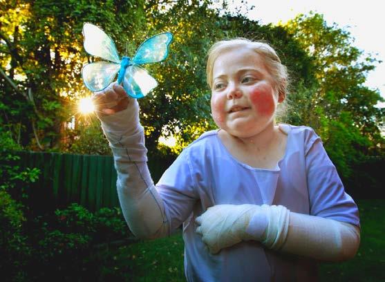 EB is a rare disease whereby the skin blisters and peels at the slightest touch. Affecting all three layers of skin and internal mucosal linings, EB has been likened to living with third-degree burns. It’s exceptionally painful, and individuals must endure three-hour bleach baths and extreme dressing changes every second day to protect and medicate their wounds.