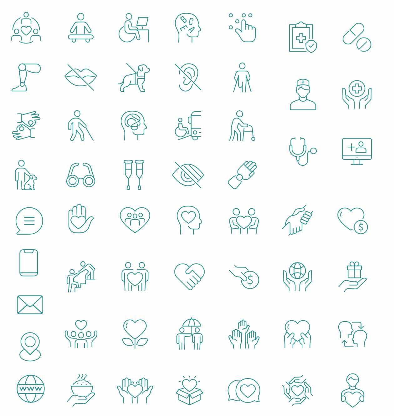 These are to be teal, outlined icons with a fine weight.