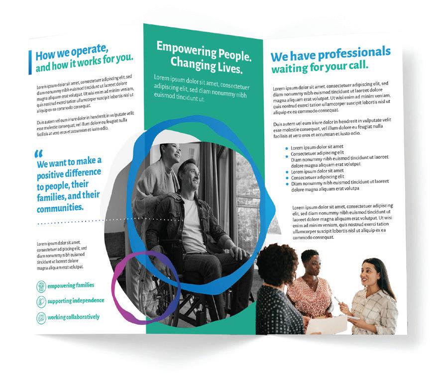 DL sized flyers come in various sizes depending on amount of content. Shown here is an example of a trifold DL flyer.