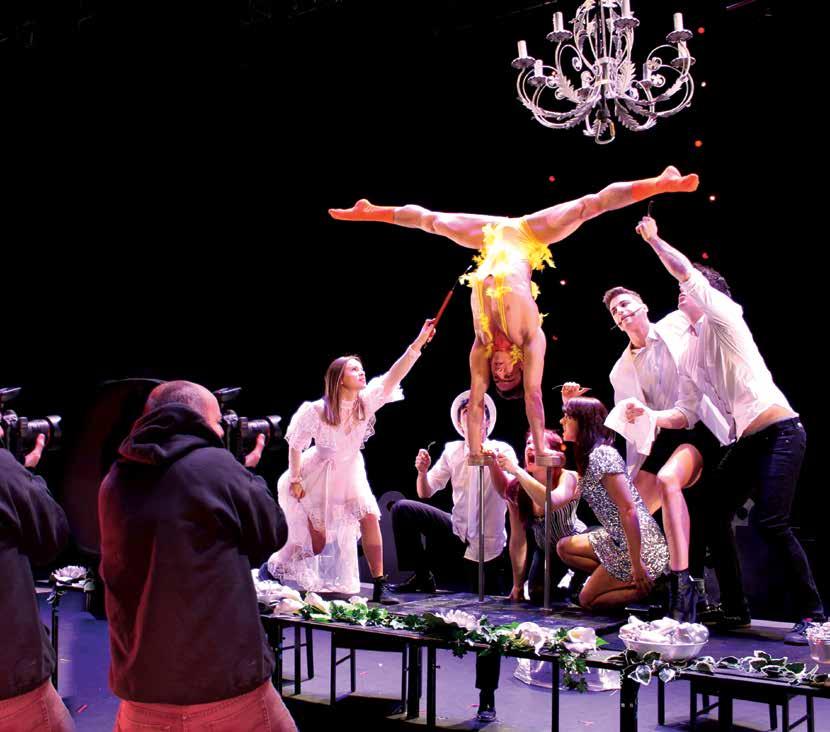 The evening opened with a circus piece directed by NICA’s Head of Performance Studies, Megan Jones, followed by dance and musical theatre acts by students from Patrick Studios.The circus element featured aerial ring, dance trapeze, hula hoop, tumbling and handbalancing. Later in the evening, CircaNICA presented an aerial straps and dance trapeze performance as part of a student fashion showcase.