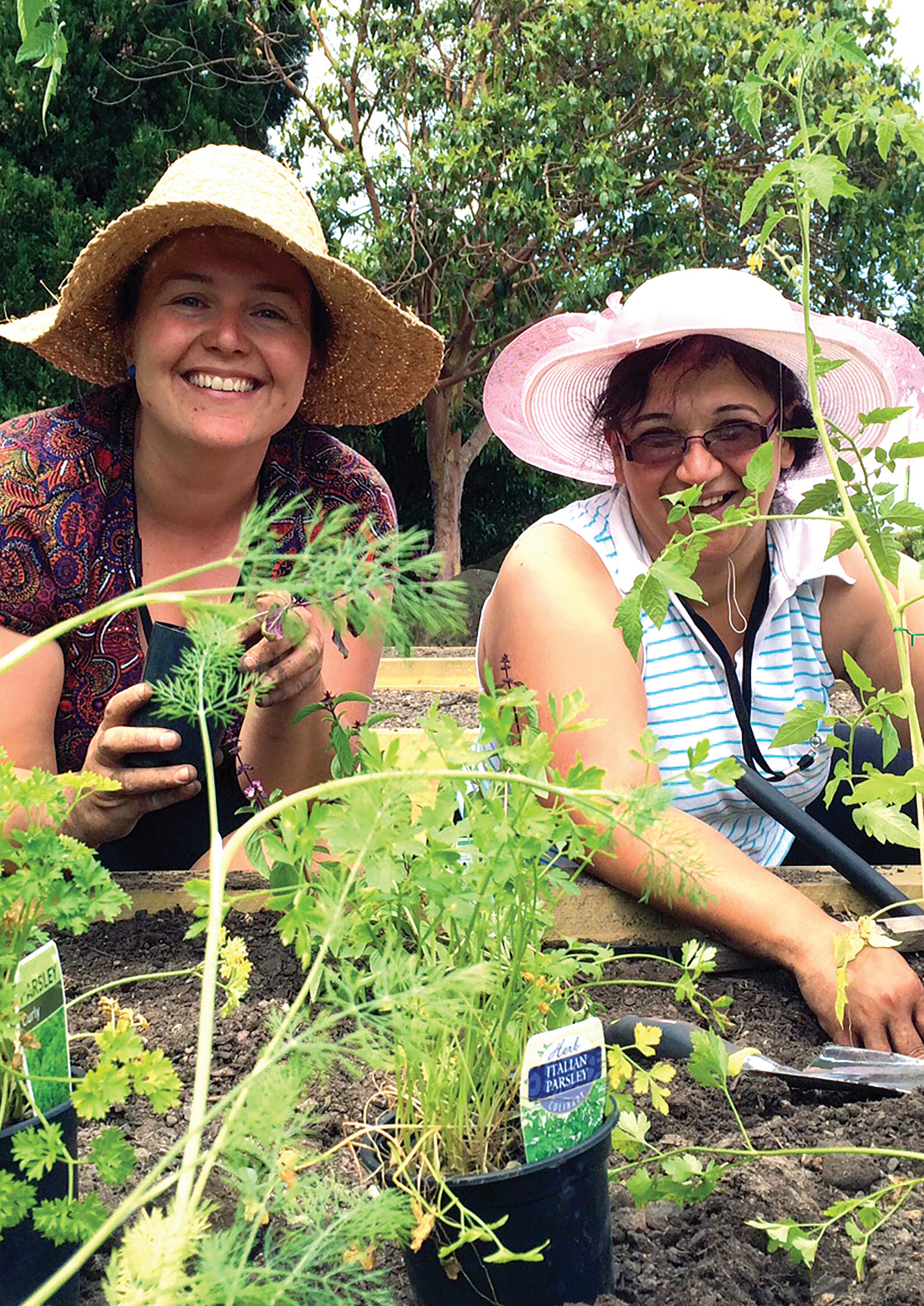 Bhutanese and Koorie elders are just two of many groups that the garden has brought together. There has been a range of collaborative activities throughout the year, such as long-term unemployed Australians caring for a vegetable patch and providing boxes of fresh vegetables to families seeking asylum, a mental health service taking their clients to work on the garden as a therapeutic occupation and local Year 9 students learning about fresh food and healthy eating.