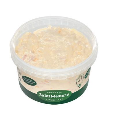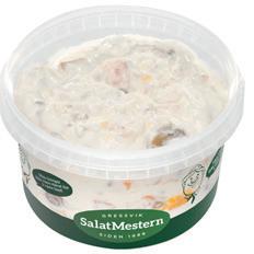 Utgiver: AS, Pancoveien 16, 1624 Gressvik Grafisk utforming og trykk:Vi i SalatMestern har helt siden starten latt kvalitet for kunden være drivkraften bak utviklingen av våre produkter. Forretningsideen fra starten var å lage produkter som fremstår som hjemmelaget. Typisk er det derfor at dagens rømme sild i beger, lages etter samme opp skriften som vi gjorde på begynnelsen av 1970-tallet.