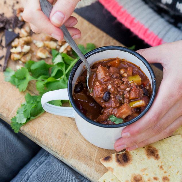 Bean Chili with Walnuts & Chocolate