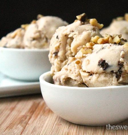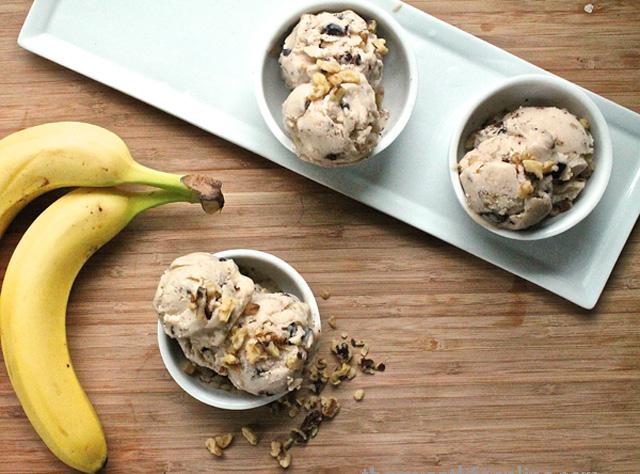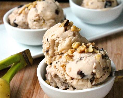 Put the chilled base into your ice cream maker and process according to manufacturer’s instructions. Then stir in walnuts and chocolate chunks by hand in a bowl. Transfer to an air tight container and freeze 4-5 hours to harden completely.