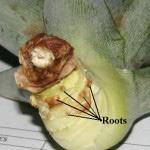 pieces off of the bottom of the crown till you can see root buds (picture below). Peel off a few layers of the leaves from the base of your pineapple cutting.
