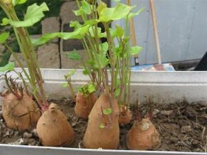 When your growing your own sweet potatoes you want to be sure and use an organic soil as most commercial growers use chemicals to keep them from shooting.