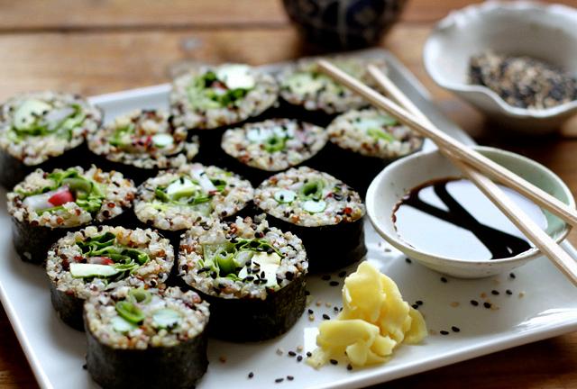 Sarah’s Quinoa Spring Sushi is more than just sushi. We like to think of it as a delicate portion of plant-based heaven. Forget everything you think you know about sushi and ready your palate for a dish that is all at once light, filling, nutritious, and rich in texture and flavor. Sarah credits her appreciation for new food adventures to her best friend’s mother, who taught her to eat everything “outside of the norm.” Sarah’s Quinoa Spring Sushi and DIY Quick-Pickled Ginger certainly fit this description, putting superfood quinoa unexpectedly on stage with traditional sushi ingredients like avocado,