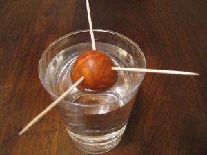 Take your seed and wash in the sink, with your cleaned seed stick in three or four toothpicks and