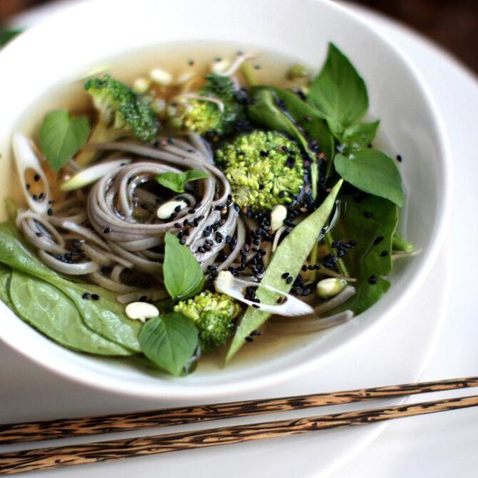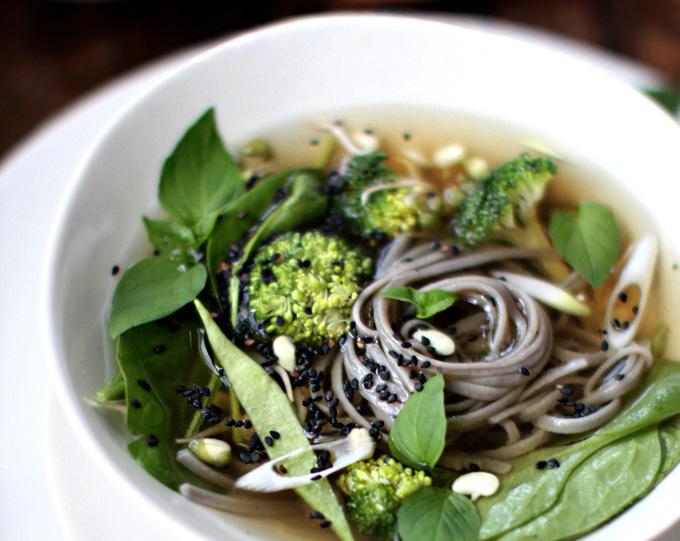 Sarah’s memories of her high school years include eating bowl after bowl of poorly made pho, simply to escape her parents for the day and have a little fun in Chinatown, she admits. Motivated by her travels to Berlin and what she calls “really tasty” food enjoyed in a Vietnamese restaurant close to where she was staying, Sarah recreated her vision for what good pho tastes like. She brings this new awareness to her tantalizing Pho-Inspired Noodle Bowl recipe. Putting her own spin on conventional pho, using earthy-tasting buckwheat noodles in place of traditional rice noodles, Sarah’s Noodle Bowl is brimming with goodness from ingredients like fresh ginger, fennel seeds, cardamom, star anise, and coriander. She replaces pho’s standard beef and chicken broth with a veggie broth and suggests throwing in exotic plants like bok choy, romanesco, and sriracha. Add a few mushrooms, tamari, and lime and see where your inspiration takes you.