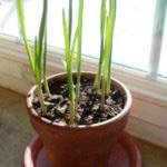 You only need a single clove to regrow an entire garlic plant, just place the end with the root down into the soil. Place your container in a warm part of your home with direct sunlight and sit back and wait for the garlic to root itself and begin to send up new shoots. After the garlic becomes established in the soil cut back the shoots and the plant will begin to put all its resources into growing a big delicious garlic bulb. Just like the ginger above once you harvest your produce you can repeat this process and run through the cycle again.