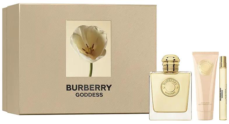 5Estuche Burberry Goddess: Eau de Parfum vaporizador 100 ml + Loción corporal 75 ml + Eau de Parfum vaporizador 10 ml.