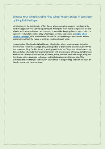 Bling EM Rim Repair is your go-to destination for all things wheel repair. We specialize in high-quality rim repair, employing cutting-edge technology and equipment to ensure that your wheels appear and perform at their best.