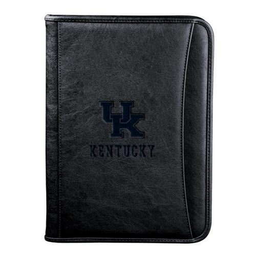 This premium padfolio with FSC® Mix Paper features an interior organizer with gusseted file pocket This zippered closure padfolio includes Clear ID or calculator pocket and front slot pocket and 8.5 x 11 writing pad.