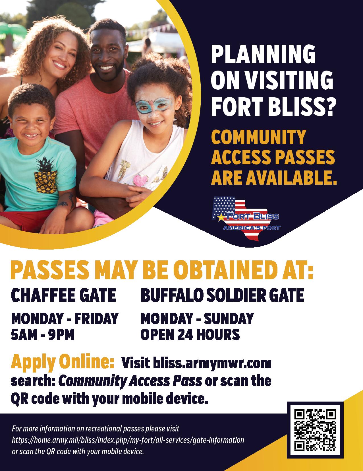 Experience all that Fort Bliss and El Paso have to offer at the Bienvenidos A Bliss Relocation Fair! Join Army Community Service on THURSDAY, JUL 24, from 1 to 4 p.m. at the Centennial Banquet and Conference Center for an engaging and informative event designed to welcome and connect our community. Discover everything our installation and the greater El Paso area has to offer, whether you're new to Fort Bliss or a longtime resident. Explore more than 100 informational tables featuring on- and off-post resources, local organizations, and businesses-all committed to enhancing your Fort Bliss experience. For more information, call 915-569-5864.