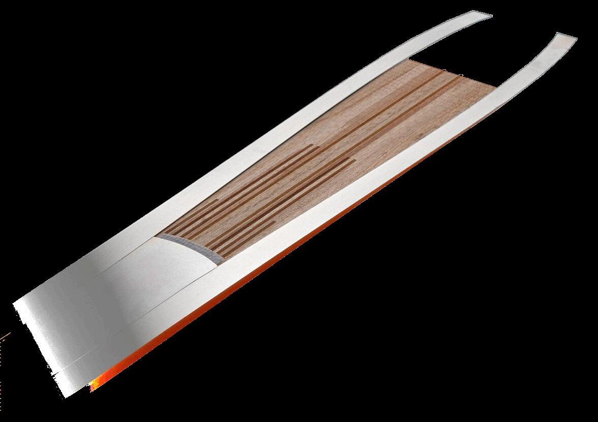 Freeride Trueblend Woodcores use stringers of Beech concentrated underfoot for added strength where you want it. The juxtaposed stringers of Poplar and Paulownia keep the swing weight down and allow for a smooth, balanced flex from tip to tail.