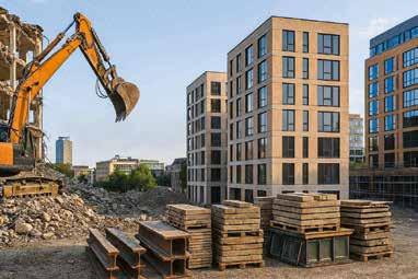 As long as reused building materials are legally considered »waste,« their potential remains blocked Only when materials are tradable, certified, and documented can a functioning market emerge with price, quality, and quantity as measurable variables. One example of regulatory open ness is building type E: less technical overregulation, more planning freedom. This makes simplicity a catalyst for resource efficiency. But the experiment must become the standard. Because the chal lenges of our time cannot be solved in a linear fashion. Urban mining offers the opportunity to think about climate, capital, and responsibility together not as a model of renunciation, but as an economically sensible transformation.