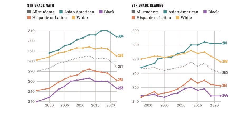 Students in fourth and eighth grade saw unprecedented declines nationally in math and significant under performance in reading between 2019 and 2022. The declines affected students in every state and region of the country.