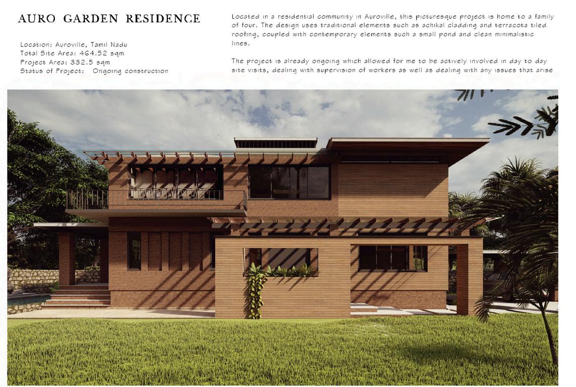 Located in a residential community in Auroville, this picturesque project is home to a family of four. The design uses traditional elements such as achikal cladding and terracota tiled roofing, coupled with contemporary elements such a small pond and clean minimalistic lines.