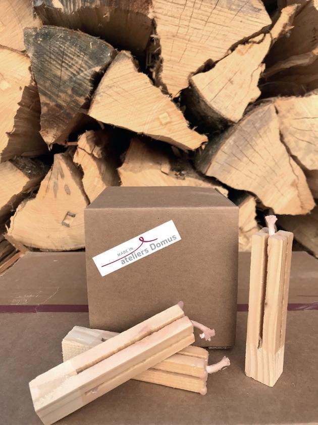 Fabriqués à l’atelier Bois de feu, avec mèche et paraffine. Carton de 25 pièces / Fr. 6.boisdefeu@fondation-domus.ch Tél. 027 205 75 64