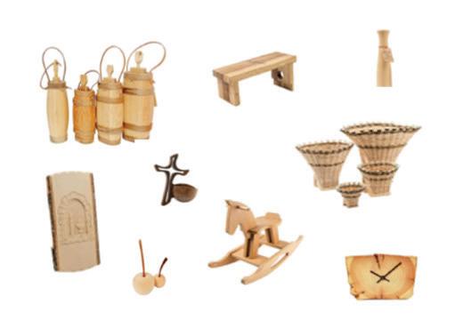 Geschenkartikel aller Art wie: Holzspielzeug, Butillen, Weinkühler, Holzgefässe, Käsehobel, Wurstho bel, Pfeffermühlen, Stuhl- und Tischfüsse, Früchteschalen und Besenprodukte.