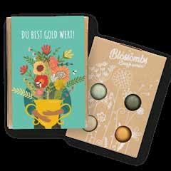 Ein edler Geschenkkarton mit 9 bunten Blossombs, der gut in den Briefkasten passt. Reicht für 2 m2 Wildblumen.