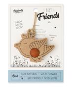 Chaque suspension contient une Blossomb colorée. Utilise la suspension comme étiquette cadeau, comme décoration pendant les fêtes, en déco à la maison, ou tout simplement pour faire un joli petit cadeau. Ensuite, jette la Blossomb à l’extérieur, par exemple dans ton jardin, un endroit dépourvu de végétation dans ton quartier, ou encore dans un pot sur ton balcon (évite les réserves naturelles). Les fleurs qui germeront à partir de cette « bombe » de fleurs sont un festin pour les abeilles et papillons, qui en profiteront au printemps et en été !