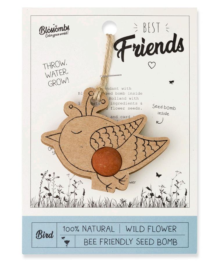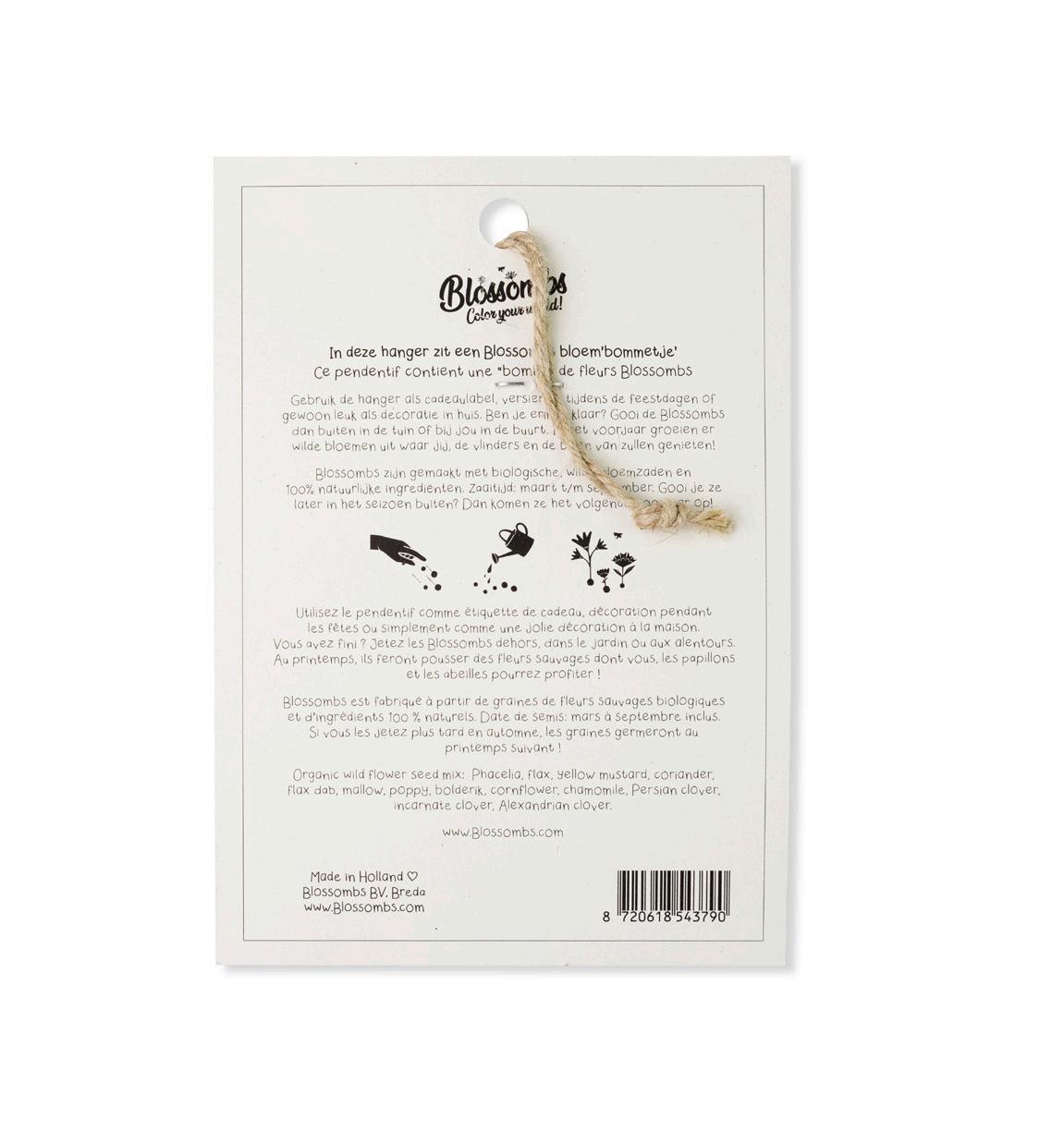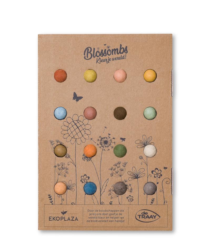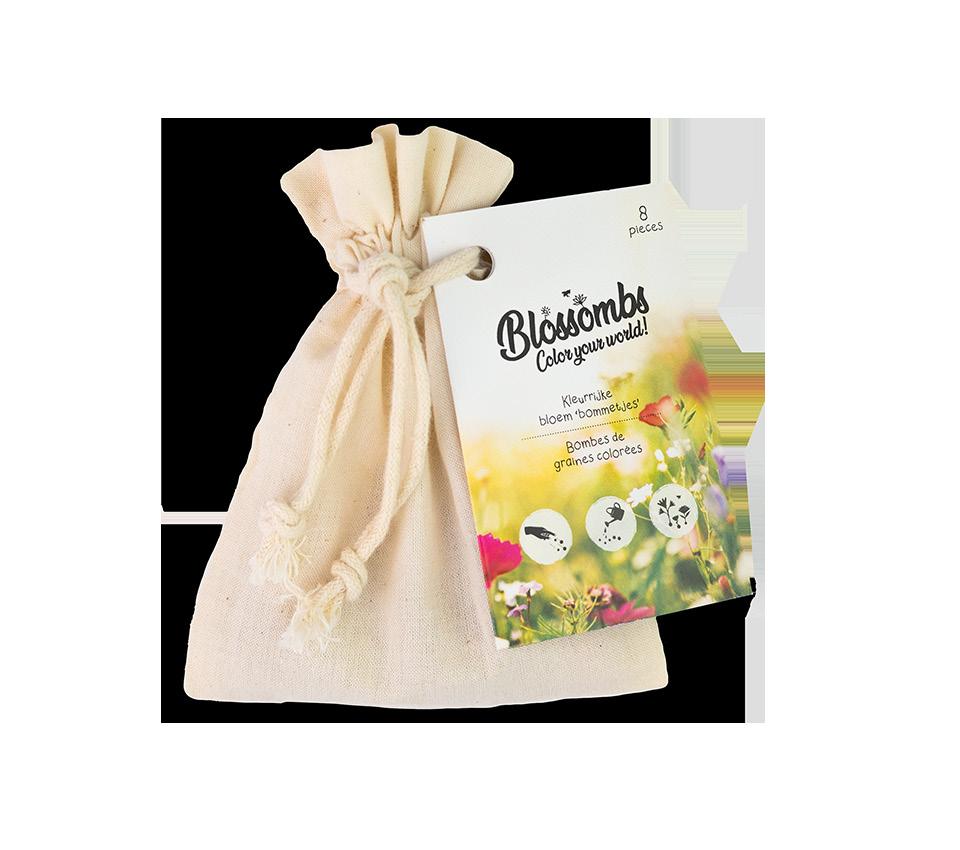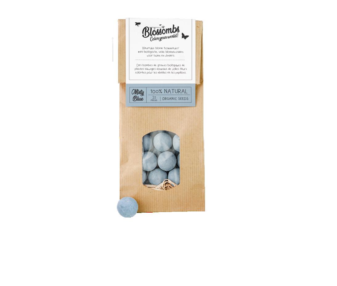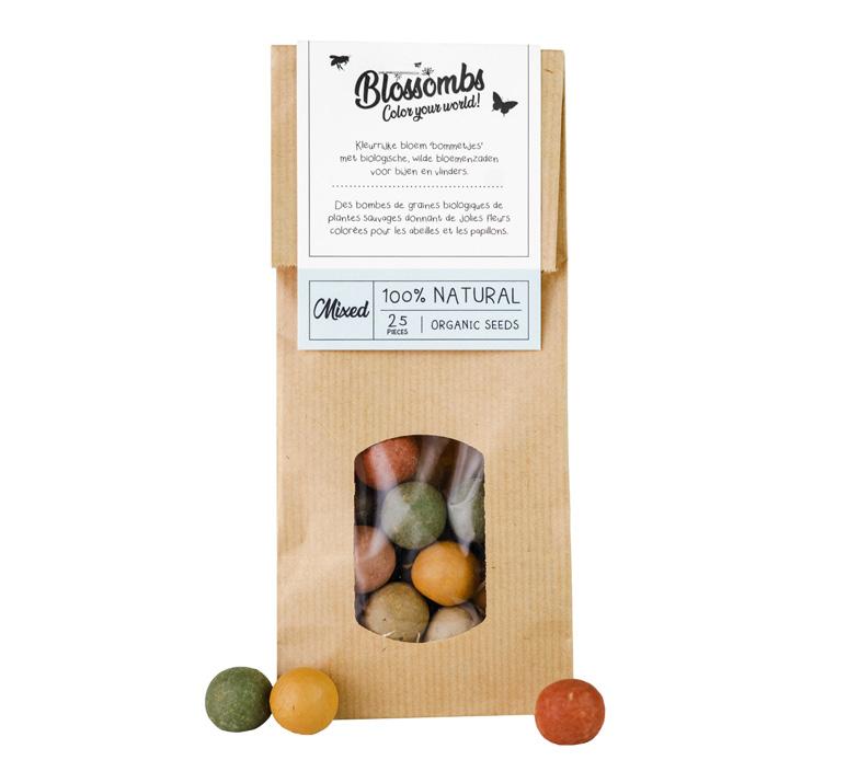 Blossombs zijn kleurrijke bloem’bommetjes’ geproduceerd in Nederland. Ze zijn gemaakt met biologische, wilde bloemzaadjes en 100% natuurlijke ingrediënten. Blossombs zijn zeker 2 jaar houdbaar.