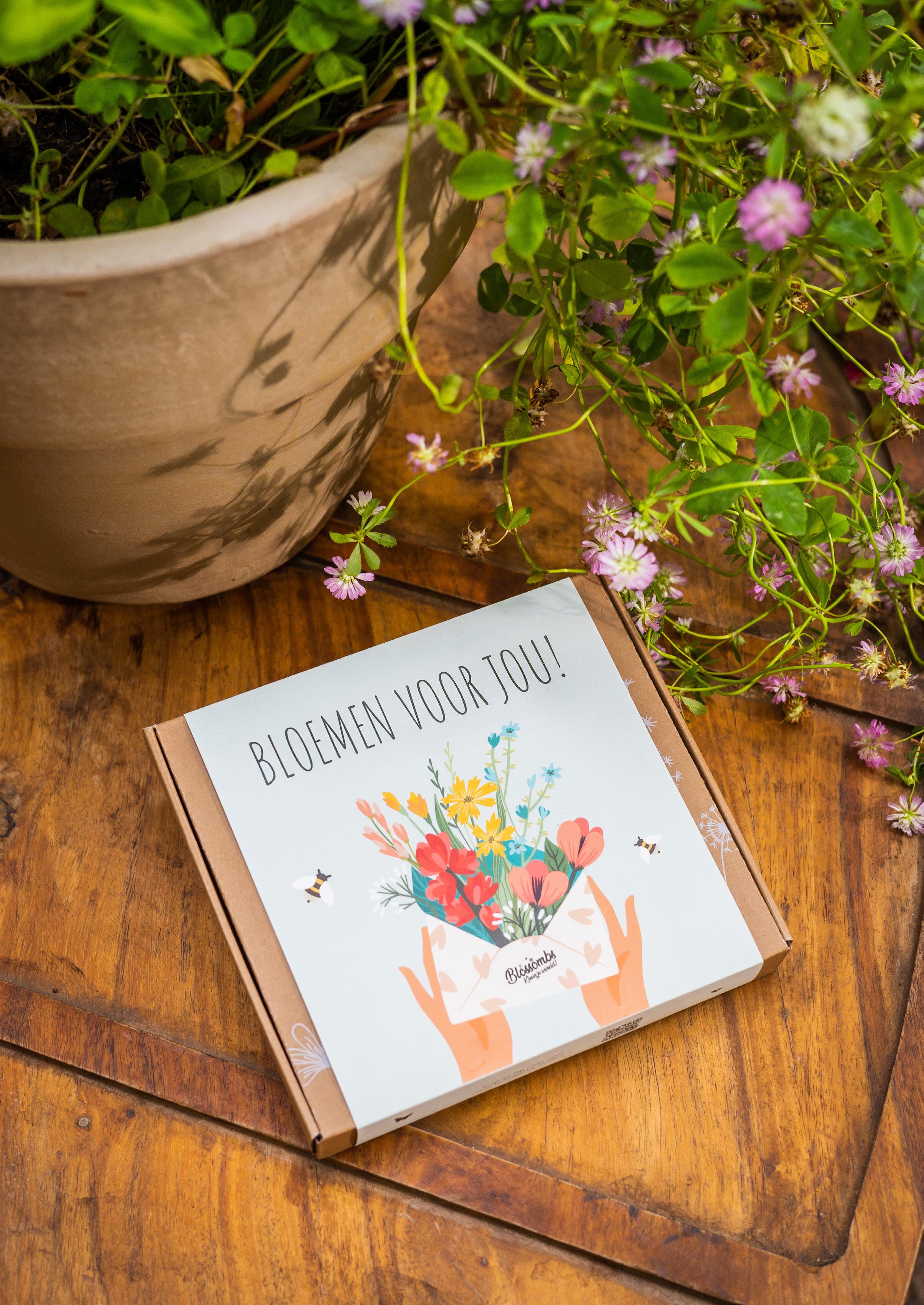 Een luxe geschenkdoos met 9 gekleurde Blossombs, die ook gemakkelijk door de brievenbus past. Je kunt hiermee 2 m2 wilde bloemen creëren.