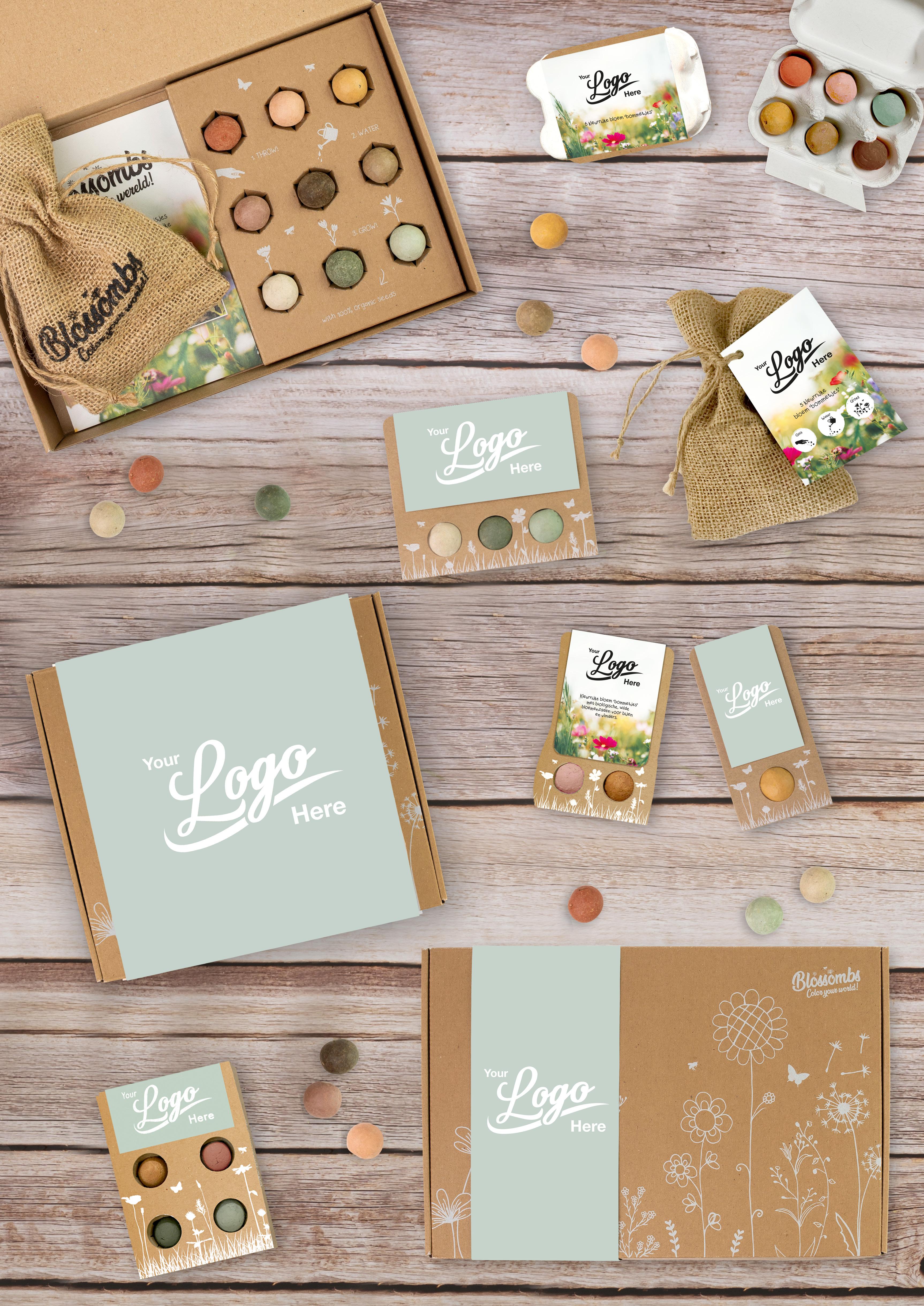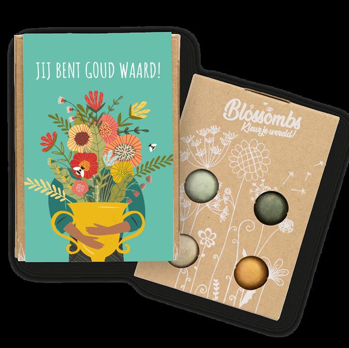 Een leuk, klein weggeefcadeautje met 1, 2 of 3 Blossombs in sleeve voor feesten, bruiloften, als bedankjes voor de juf, relatie of collega, of… gewoon zomaar! Ook heel geschikt als zakelijke giveaway.