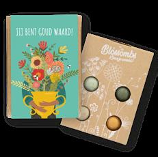Een leuk, klein weggeefcadeautje met 1, 2 of 3 Blossombs in sleeve voor feesten, bruiloften, als bedankjes voor de juf, relatie of collega, of… gewoon zomaar! Ook heel geschikt als zakelijke giveaway.