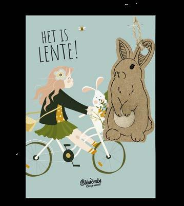Hanger konijn op kaart - Lente - Meisje op de fiets
