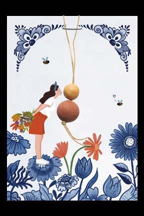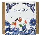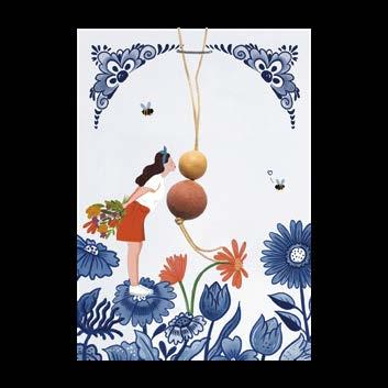 Gelukspoppetje op kaart Delfts blauw